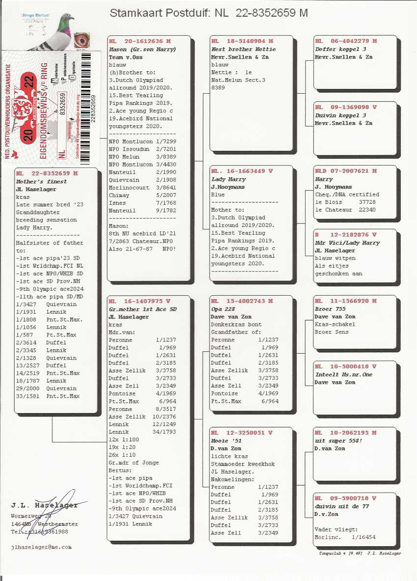 父亲: NL20-1612636 梅森-获长距离鸽王8位/NPO查特路7位